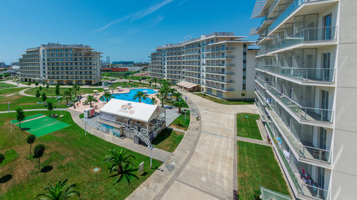 Перед Олимпиадой 2014 в имеретинской низменности Сочи был построен самый большой отель - Азимут. 12 корпусов, 2800 номеров, множество ресторанов - все это располагается на огромной огороженной территории...