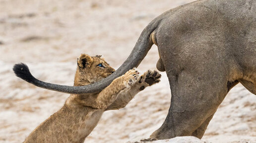 Самой смешной фотографией 2019 года стала работа Сары Скиннер, которую она назвала “Хватай жизнь за...“ Фото получило первое место в известном конкурсе Comedy Wildlife Photography Awards-2019. Фотографу удалось запечатлеть момент, когда маленький львенок играет с взрослым львом...