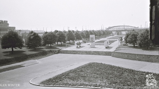 Государственный архив Калининградской области делится уникальным историческим снимком, сделанным в 1974-1975 годах. На фотографии запечатлён вид с острова Центральный (ныне — остров Иммануила Канта) со стороны Кафедрального собора. На фото видна главная аллея, вдали угадывается эстакада и характерная «воздушная» крыша ещё строящегося Дворца спорта «Юность», который откроют только в декабре 1976 года. Прямо по курсу взгляда фотографа расположены Аллея Славы и памятная стела, посвящённые боевому и трудовому подвигу советского народа...
