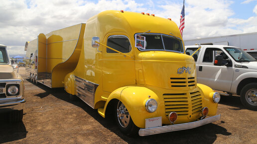 На чём возят гоночные автомобили? Не своим же ходом они добираются до трека. На грузовиках, трейлерах скажете вы и будете отчасти правы. Но есть некоторые парни, у которых особый подход к этому делу. Один из них, Рич Робертс, гонщик-любитель из Америки. На базе старого автомобиля GMC COE 1941 года выпуска он создал отличный тягач, которого по праву можно назвать произведением искусства. Автомобиль стилизован под классический стримлайнер, с плавными линиями и добавлено много деталей для эффектного вида...