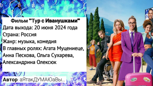 Всем привет! Лето потихоньку приходит к своему завершению, а нам не хочется с ним расставаться! Я решила его продлить с помощью фильма «Тур с Иванушками»! Три подруги, в детстве фанатевшие от «Иванушек International», понимают, что за всю жизнь не совершили ни одного безумного поступка, всегда всё делали ради кого-то, а не для себя. Они решают исполнить свою детскую мечту — поехать в тур за «Иванушками» по югу России, чтобы наконец-то отвлечься от всех проблем. Совершенно разные девушки, но их объединяет любовь к одной группе! Была в этой компании четвертая девушка, но она умерла...