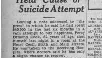 1927 год. Январь. Первый случай смертельного инцидента в отеле. С самого открытия, в стенах отеле начали происходить мистические и жуткие события. Первооткрывателем суицидников в январе 1927г. стал Перси Ормонд Кук. 52-летний мужчина поселился в отеле в одном из номеров из за ссоры с женой. Он принимал несколько попыток примирения, но все было тщетно. Перси купил незаконно револьвер у уличных криминальных торговцев и пронёс его в номер. Звук выстрела встревожил постояльцев отеля. В итоге Кука нашли в номере, истекающего кровью и вызвали скорую...