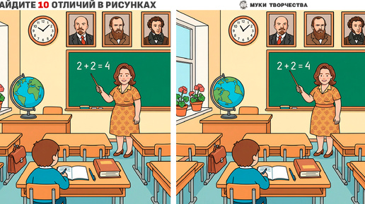 У вас зоркий взгляд, если найдëте 10 отличий на картинках с учительницей и учеником
