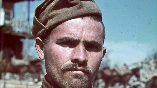 Color photo of the Second World War: Portrait of the Unknown Bulgarian soldier who fought on the side of Nazi Germany (Third Reich). Location: Bulgaria