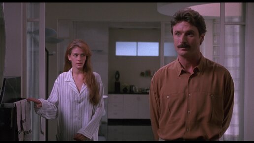 Неплохой триллер начала 1990-х. К сожалению, очень блёклый актёрский состав - на роль мужа и нового приятеля можно было бы взять кого-нибудь поинтереснее и поизвестнее. Джулия Робертс мне никогда не нравилась ни внешне ни по игре, но здесь она вроде как на месте. Хотя её героиня не вызывает сочувствия. Ну невозможно не увидеть изначально что человек психически болен. Забавно как она легко из огня да в полымя - сбежав от одного сразу кидается в отношения с другим-) Грабли, грабли... Вообще с первых кадров чувствуется что это история, сочинённая женщиной...