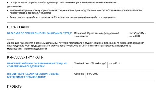 Пример резюме инженера по нормированию труда 2025 - Как составить