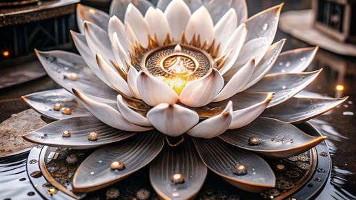Серия изображений водяных лилий с металлическими элементами, настоящими лепестками и необычной сердцевиной. Читайте истории, смотрите картинки, сочетайте несочетаемое :) UPD: Recraft с 12.09.2024 недоступна...