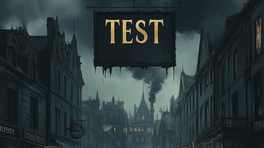 Создано на основе запроса: street of a dark Victorian town where the sun never shines and the sky is covered with black smoke. in a random place on the image is the inscription "TEST" --- Автоперевод: Улица темного викторианского города, где солнце никогда не сияет, а небо покрыто черным дымом...