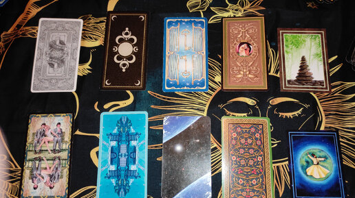 Здравствуйте. Сегодня посмотрим карту недели. На 10 картах разных колод. Выбирайте карту Слева направо. От 1 до 10. Сосредоточьтесь на картах. Не думайте ни О чем, кроме них. Чувствуйте, какая карта тянет вас. И смотрите описание. Итак, Карта недели. С 18 по 25 мая. 1. Таро Уэйта. Туз мечей. Прекрасная неделя для новых идей, реализации давних планов. В вас включится стратег. Вы опередите врагов на несколько шагов вперед, если будете думать трезвой головой. 2. Таро Безумной Луны. Умеренность. Спокойная неделя...