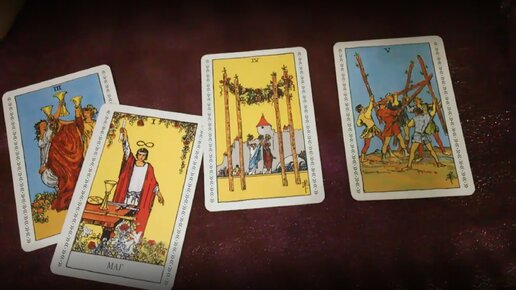 Что он думает о вас прямо сейчас,какие у него мысли? Загадывайте одну из трех карт И посмотрим что говорят вам карты. Первая позиция 1. Здесь у нас сразу две карты И обе карты просто замечательные! Это маг и тройка кубков Это любовь и решимость Он думает о вас,он мечтает о вас,он желает вас! Он думает что все складывается ровно так как он того хочет,как задумал И он доволен тем как все развивается. Вторая карта 2. Четверка жезлов Это просто замечательная карта в раскладе на отношения...