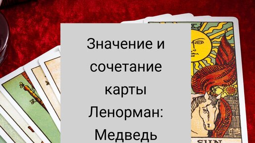 Решила начать цикл значений карт Ленорман. Сегодня расскажу про карту Медведь. Карта Медведь это пятнадцатая карта колоды, которая обозначает опеку, силу, надежность. Общее значение карты Медведь В первую очередь карта означает опеку и попечительство, защиту, надежность. Также может говорить о взрослом и авторитетном человеке. Личная жизнь и отношения Указывает на очень прочные и давние отношения, которые сложно разрушить. В них доверие и много помощи. Так же может показать любовный треугольник и властного мужа...