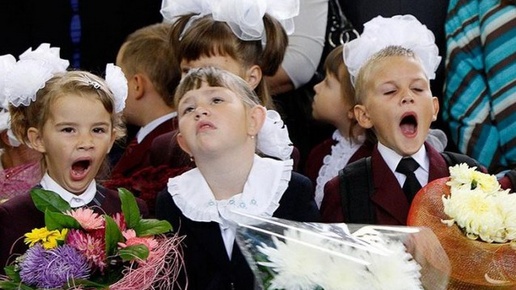Поднимаем настроение вместе с весёлыми школьниками и их родителями. 1 сентября - не повод для грусти! 1. Это праздник не День знаний, а День освобождения родителей. 2. А кто не зевал утром 1 сентября? Пусть первый бросит тапки. 3. И ещё позевушки Просто рано вставать приходится теперь в школу. И для многих детей и их родителей именно это самое сложное. 4. А сколько лет ещё учиться? Это же так долго! Мой сын сказал недавно, что ему осталось ещё учиться в школе больше, чем он уже проучился. И это печаль печальная...
