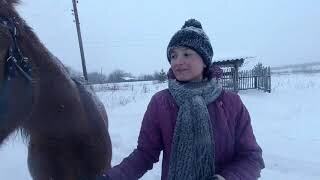 Молодая лошадь первый раз в упряжке