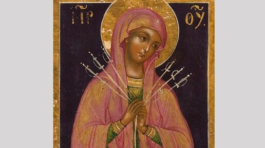 Незатейливая иконография, изображая пронзающие Богоматерь мечи, означает страдания Матери за Сына, поруганного людьми. Богоматерь страдает – и молится за них, как и Ее Сын молится за распявших Его