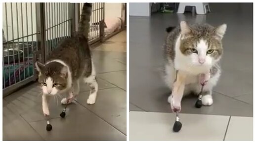 Искалеченный живодёрами кот Валлаби получил новые титановые лапы