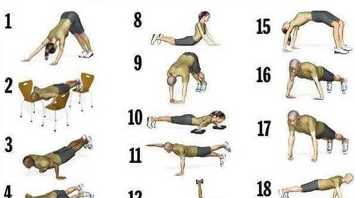 Все об отжиманиях: польза, вред , особенности, ошибки, план занятий. Как научиться отжиматься Отжима́ния — базовое физическое упражнение, выполняемое в планке и представляющее собой опускание-поднятие тела с помощью рук от пола, скамьи, стула, стола, стены и т. д. Возможно, с дополнительным отягощением Как правильно отжиматься Во-первых, помните о правильном дыхании. Для большого количества повторений насыщение мышц кислородом очень важно. Опускаться нужно на вдохе, подниматься – на выдохе. Во-вторых, следите за техникой упражнения...