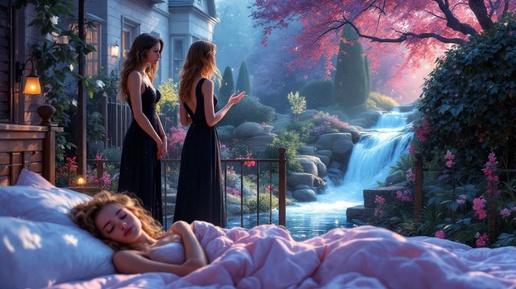 В нашем огороде появился ручей с мыльной водой, который потек от соседей. Я пошла разбираться и вдруг встретила полноватую женщину в черном коротком платье, она начала объяснять ситуацию. За ней шла и соседка, недоумевая, как ручей попал к нам, ведь забор высокий. Они жаловались, что вода течет к нам. Я хотела отвезти воду, но ручей сам направился в колею и сбежал с горки за огород, оставив нас только смотреть ему вслед. За огородом была незнакомая местность, и я समझала, что это место нам не принадлежало...