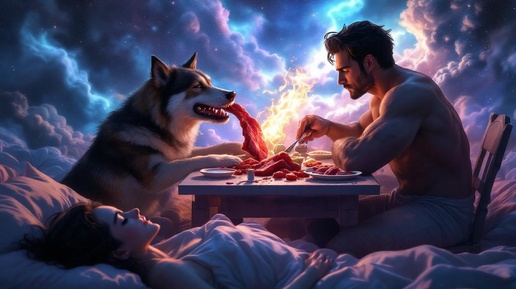 Мне приснился сон, в котором собака перепутала мясо с человеческой плотью и отщипнула у мужчины кусок плоти от плеча. Мужчина имел черные волосы чуть длиннее средней длины и атлетическое телосложение. Пока он ел мясо, собака одновременно отщипывала от его плеча два маленьких кусочка плоти. Спасибо за ответ!!🙏🥰💚 Кстати, вы тоже можете прислать свой сон для трактования нашему боту в телеграмм – https://t.me/ReceiverDream_bot В данном сне есть несколько ключевых символов. 🌙✨ Первое, на что стоит обратить внимание, это собака, которая ест плоть человека...