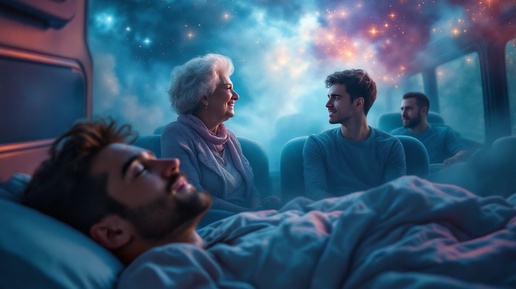 Мне приснился сон, в котором я ехала в автобусе. В других местах сидела моя покойная бабушка с кем-то неизвестным, а мой живой папа находился в автобусе, но мы не контактировали. Бабушка подошла ко мне и радостно показала, как рада меня видеть. В этот момент к нам хотел присоединиться какой-то парень, но бабушка его не пропустила. Он агрессивно спросил, может ли он сесть, и, получив отказ, сел перед нами. Бабушка рассказывала что-то позитивное, а парень бросил ей фразу, за которую я заступилась. В какой-то момент бабушка вышла на остановке, а я выбежала за ней, но её не нашла...