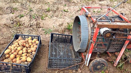 В этом видеоролике показан самодельный картофельный комбайн. Описано его устройство и принцип работы, а также показан сам процесс копки картофеля.