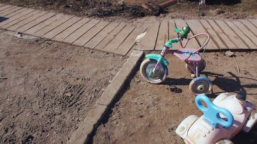 Всем привет!!! С вами Дмитрий, канал Gudmig//Свой дом. Осенью 2020 года после некоторых работ у меня осталось в наличии пара мешков цемента. Ну и чтобы не пропадать строительному материалу, решил пустить его в дело. Изначально хотел залить бетонную площадку около крыльца основного входа, но в дальнейшем отказался от этой идеи. Т.к. бетонная площадка не вписывается в концепцию моего участка. В основном все дорожки у меня сделаны из дерева. Да и в дальнейшем ещё планировалась отсыпка участка на небольшую высоту...