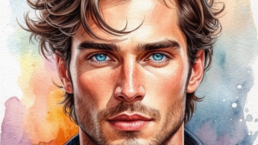 Брюнет с голубыми глазами. Акварель. Нейросеть: Шедеврум Студия. #цифроваяживопись #нейросеть #мужчина #нейроарт #идеи #цифровоефото #рисунок #нейрофото #артыотнейросетей #нейроSD #бесплатныенейроарты...