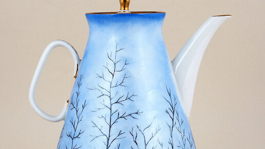 «Я вижу их во сне, а затем воплощаю в фарфоре» – так ответил знаменитый советский мастер Алексей Воробьевский на вопрос о том, как рождаются уникальные идеи. Я вспомнил его слова, разглядывая необычные советские чайники. Действительно, талант некоторых людей таков, что остается только удивляться, любуясь их работой. Фактурная поверхность смотрится очень стильно. Довольно необычна и форма. Носик напоминает загнутый птичий клюв. Контрастная цветовая комбинация усиливает сходство формы с птицей. Чайник называется «Пеночка», но мне кажется, что более точным было бы «Пингвинчик»...