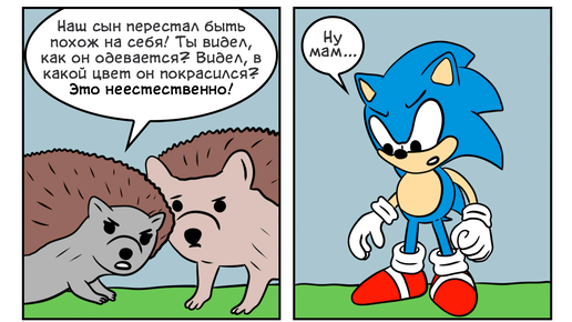 Еж Соник является одним из самых известных и узнаваемых героев видеоигр, а также официальным маскотом компании Sega. Созданный как конкурент Марио, синий еж в итоге стал центральным персонажем огромной медиафраншизы, которая включает в себя видеоигры, кино, мультфильмы и комиксы. А еще Сонику часто посвящают фанатское творчество - к примеру, юмористические веб-стрипы. Несколько подобных сюжетов собраны в этой статье. Надеюсь, что вам понравится! Одна из главных способностей Ежа Соника - это его невероятная скорость...