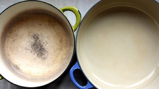 Эмалированная посуда одна из самых красивых на кухне. Не знаю как вам, а мне нравится готовить именно в ней. Да и по вкусу все в ней совсем другое, не то что в металлических кастрюлях. Но есть одна проблема. Если что-то в эмалированной емкости пригорело, остается неприятный черный налет внутри. Да и просто от долгого применения она покрывается неприятным налетом. Возникает он обычно от жесткой воды, которая содержит много солей. Причем чистить такую посуду надо аккуратно, чтобы поверхность не поцарапалась...