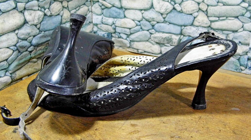 Вот такие босоножки. Стельки скукожились, их оторвали и выкинули. А также есть сильное желание заменить каблук - этот не удобный. Хотелось бы пониже. Снимаем каблук. Он крепился на саморезе и винтовых гвоздях. Без клея. Едем подбирать новые каблуки. В режиме онлайн подобрали следующий. Он ниже и более прямой. Можно ли уменьшать высоту каблука - описано здесь: Обрезать каблук? Можно! Также больше площадь набойки. И отсутствует этот вылет, который обычно отламывается. Отламывается из-за того, что форму стельке придаёт супинатор...