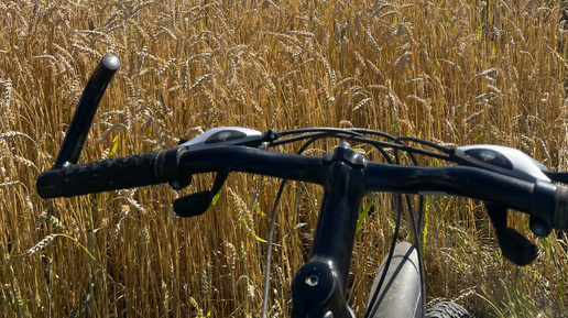 Красивые поля с колосьями. Сбор яблок. Велосипедная прогулка.