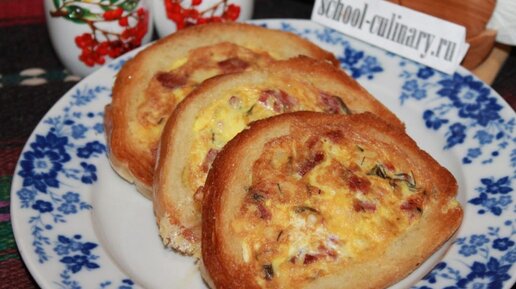 Жареные бутерброды хороши и в холодном, и в горячем виде. Хрустящая хлебная корочка, в которой запекается начинка выглядит очень соблазнительно. Внутри контура из батона жарится смесь колбасы, сыра и хлебных кубиков с яйцами. Выходит оригинально и необычно. Начинка может варьироваться, интересна сама идея праздничного угощения. Ингредиенты: Приготовление: Батон берем вчерашний нарезной. Можно порезать ломтики самому, но будут много крошек. Каждый ломтик кладем на доску и вырезаем серединку, как на фото...