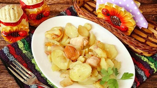Жареная картошечка, что может быть проще и что может быть вкуснее. Картошка на сале, конечно калорийное блюдо. Но такое вкусное, что отказаться трудно, несмотря на калории. Готовить жареную картошку можно хоть каждый день, ведь это так просто и так быстро. Именно так и поступала моя мама: придя с работы жарила мне картошку, которую я с удовольствием ела с огурчиками, помидорчиками, капустой и со всякими консервированными вкусностями. Теперь уже я жарю картошку для внуков. Ингредиенты: - картофель 700 г - филе куриное 200 г - сало свежее 100 г - лук красный 1 шт...