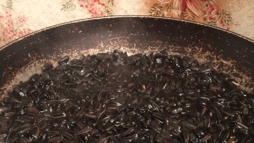 Солёные жареные семечки подсолнуха на сковороде