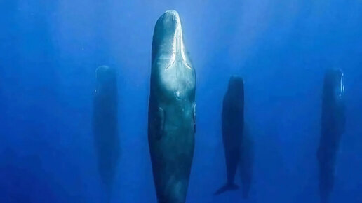 А вы знали что, когда кашалотам нужно вздремнуть, они делают глубокий вдох, ныряют примерно на 45 футов и выстраиваются в идеально ровные вертикальные узоры. Они спят крепко и неподвижно до двух часов между вдохами в группах по 5 или 6 китов, предположительно для защиты. Никто не знал, что киты спят вертикально, пока исследование 2008 года не зафиксировало их поведение...