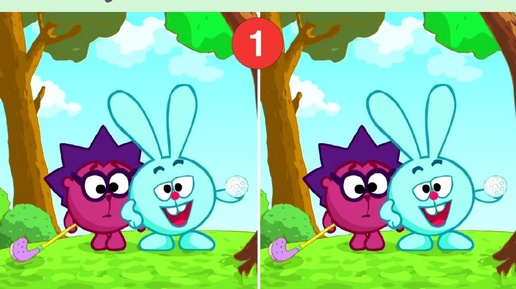 Угадай, для чего смешарикам клюшка для гольфа! А заодно найди 1 отличие быстро.