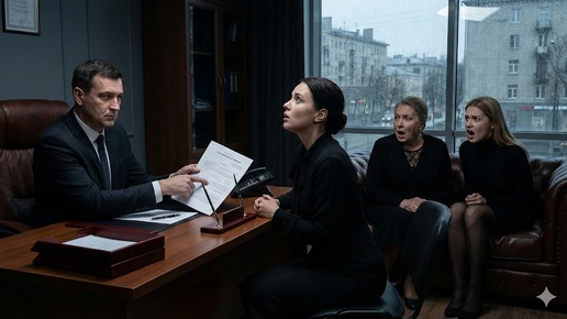 Дождь барабанил по карнизам старого особняка на Патриарших прудах так, словно сама природа пыталась смыть грязь, накопившуюся в душах людей, собравшихся в этот день. Но грязь эта была въедливой, многолетней. Я сидела в приемной нотариуса, сжав руки на коленях так сильно, что костяшки побелели. Черное платье, которое я носила уже сорок дней, казалось мне второй кожей — тяжелой, удушающей броней. Напротив меня, на кожаном диване, расположился «клан»: Галина Петровна, моя свекровь, и Света, золовка...