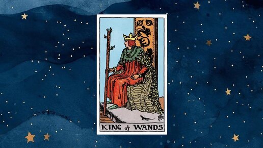 Карта «Король Жезлов» — это уверенная в себе и готовая к действию придворная карта. Действуя интуитивно, они готовы действовать решительно. Когда эта карта выпадает нам, это может быть приглашением последовать их примеру и смело действовать от всего сердца, с огоньком. В колоде Таро Короли олицетворяют внешнее лидерство. Они компетентны и зрелы. У Короля Жезлов есть четкий набор ценностей, которые он выработал благодаря опыту Пажа Жезлов и Рыцаря Жезлов, а также благодаря отношениям с Королевой Жезлов...