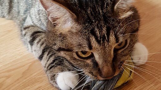 В один из дней наш кот Ланчик как обычно сидел у окошка и о чём-то мечтал. А мы с дочкой занимались уборкой квартиры и не обращали на него внимания. Неожиданно мы услышали сильный шум, доносящийся из комнаты. Мы с дочкой тут же пулей вбежали в комнату и увидели такую картину: наш Ланчик в зубах держал синичку: Мы были очень удивлены тому, как он мог это сделать, ведь на окнах у нас везде сетки. Но позже увидели, что сетка была зверско разодрана... Скорее всего, эта птичка села на подоконник и наш Ланчик не растерялся и моментально схватил её в зубы...