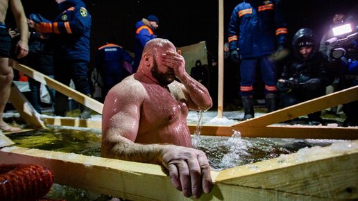 Это то самое купание в проруби на Крещение.Смотрел без присутствия жены!При ней такое лучше не смотреть!😅