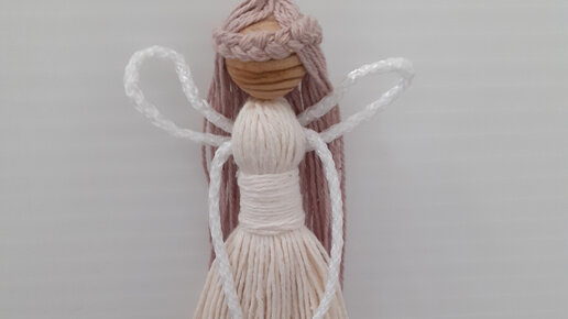 Кукла Ангел из бусины, ниток с декоративным украшением из дерева
