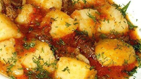 Картошка тушеная с мясом, вроде ничего такого... а на деле это шикарный соус из обжаренной говядины с картошкой и томатной пастой!