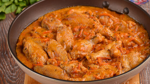 Куриные крылышки не только запекаю в разных маринадах в духовке, но и тушу в соусах. Соусы готовлю на основе томатной пасты, сметаны, сливок и разных овощей. Из овощей подходят помидоры, морковь, репчатый лук, сладкий перец, кабачки и баклажаны...