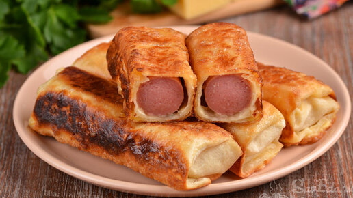 Сосиски с сыром в лаваше на сковороде