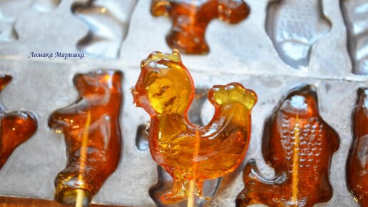 Ингредиенты: Сахар — 8 Ст. ложек Вода — 8 Ст. ложек щепотка лимонной кислоты кристаллики . Растительное масло — 1 Ст. ложка (масло нам понадобится для смазки формочек ) Отмеряем необходимое нам количество сахара, воды и лимонки. Помещаем все ингредиенты в кастрюльку, ставим на медленный огонь и постоянно помешиваем. Процесс варки занимает минут 10. Готовность карамели проверяем так - окунаем деревянную палочку или зубочистку в карамель и опускаем в стакан с холодной водой...