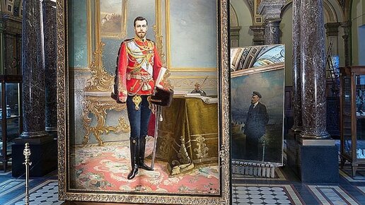 Можно смело предположить, что ни товарищу Ленину, ни его императорcкому величеству в кошмарном сне не снилось, что однажды придется не просто вместе тесниться в Зимнем дворце, а еще и находиться на одном холсте по разные его стороны, прямо как попугаи - неразлучники.🐦🐦🐦 Ну и как же так могло выйти, что на одном холсте изображены два (мягко говоря) недруга? 😎