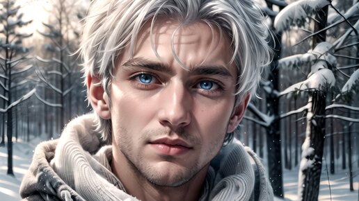 Нейросеть Stable Diffusion: блондин с голубыми глазами / снежные красавцы / зимние портреты 3ч / парень-зима