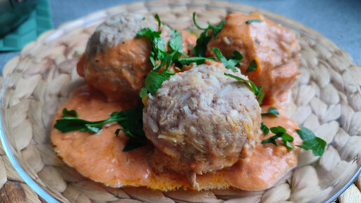 Мясные тефтели "ёжики" в сметанно-томатном соусе.