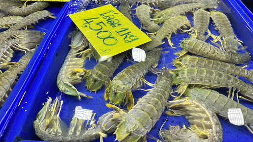 На рыбном рынке в Паттайе цены на морепродукты удивили и возмутили после Фукуока: лангуст, рак-медведка- богомол, креветка