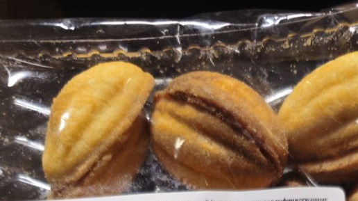 Показываю, что оказалось внутри орешков со сгущенкой, приобретенных в "Пятерочке"